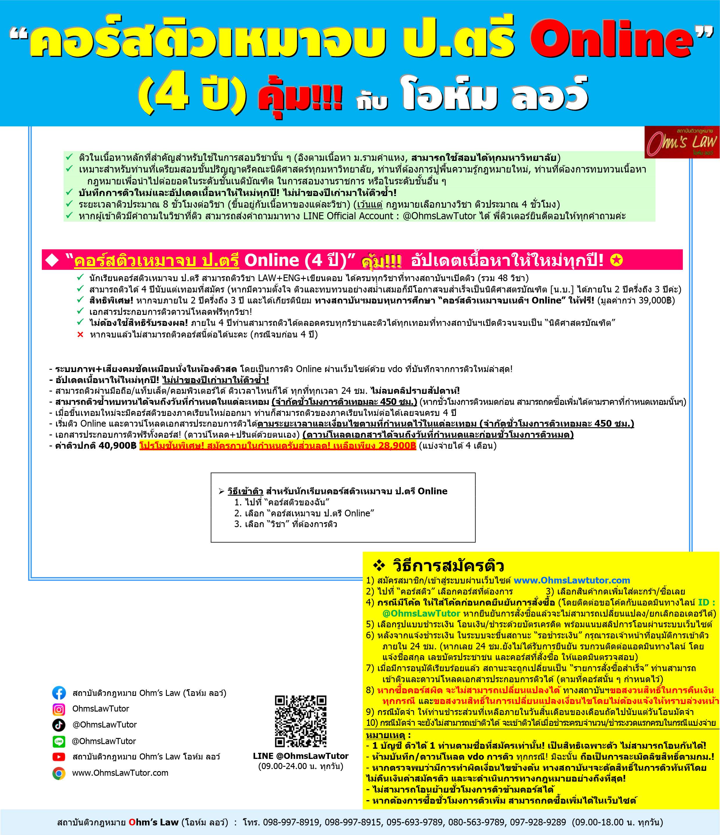 คอร์สติวเหมาจบ ป.ตรี เริ่มเทอม 2/68 วิชา LAW+ENG (4 ปี)