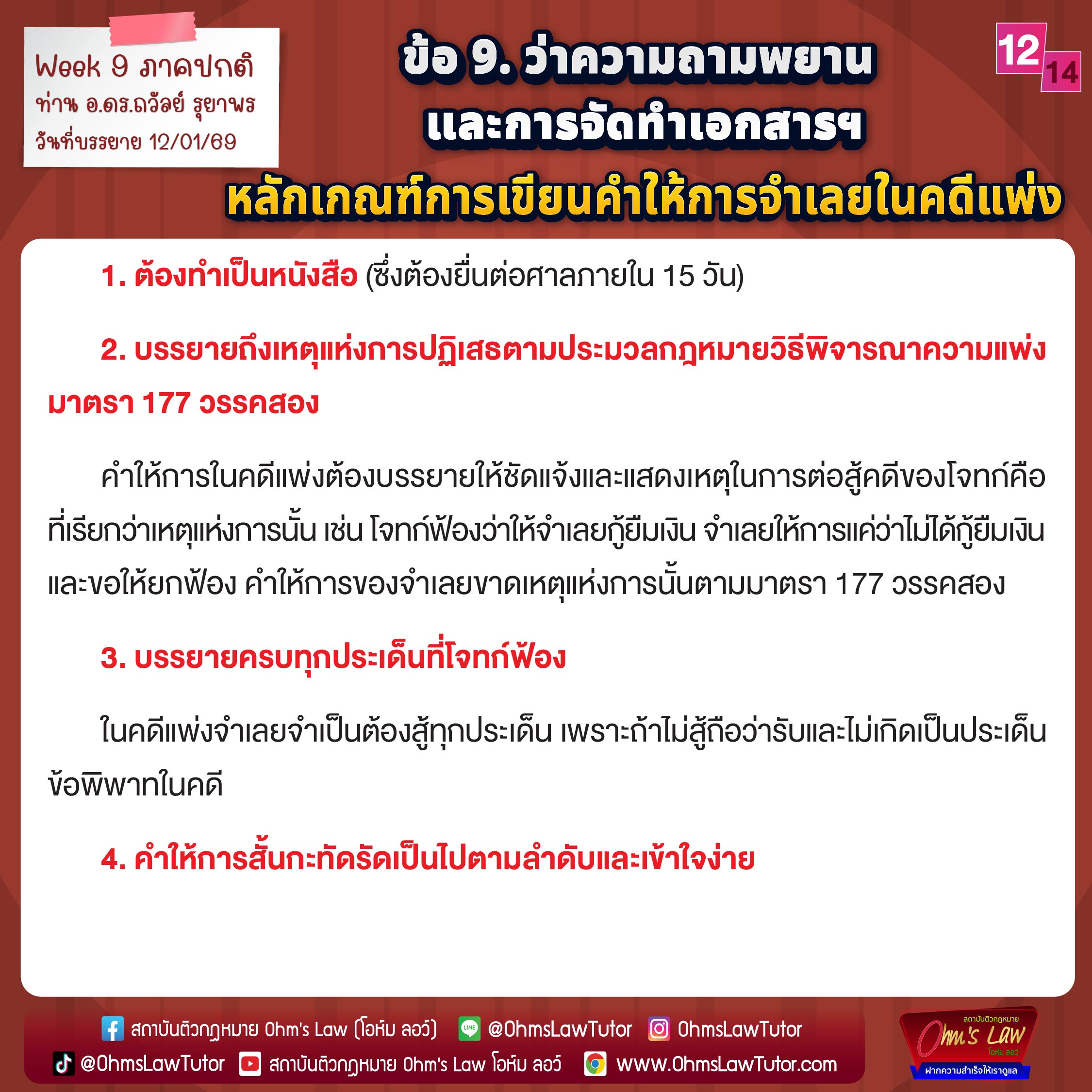 #ภาค2สมัยที่78 #Week9 #ขาวิอาญา #ครบ10ข้อ