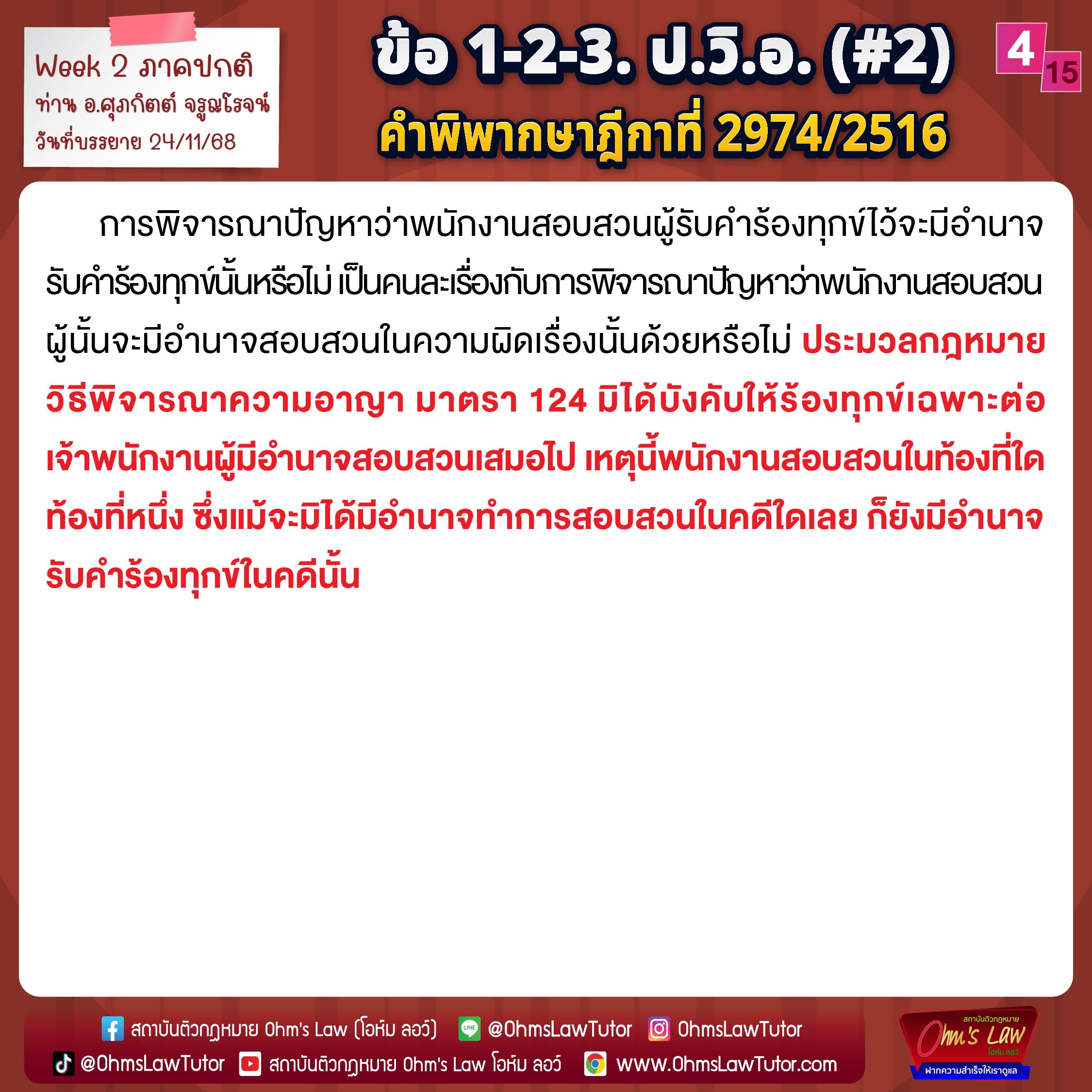 ในชุดภาพนี้เป็นข้อมูลจากการบรรยายในช่วงวันที่ 24 พ.ย. - 29 พ.ย. 68 (สัปดาห์ที่ 2) เชิญทุกท่านอัปเดตกันได้เลยครับ 📚😊✌🏻