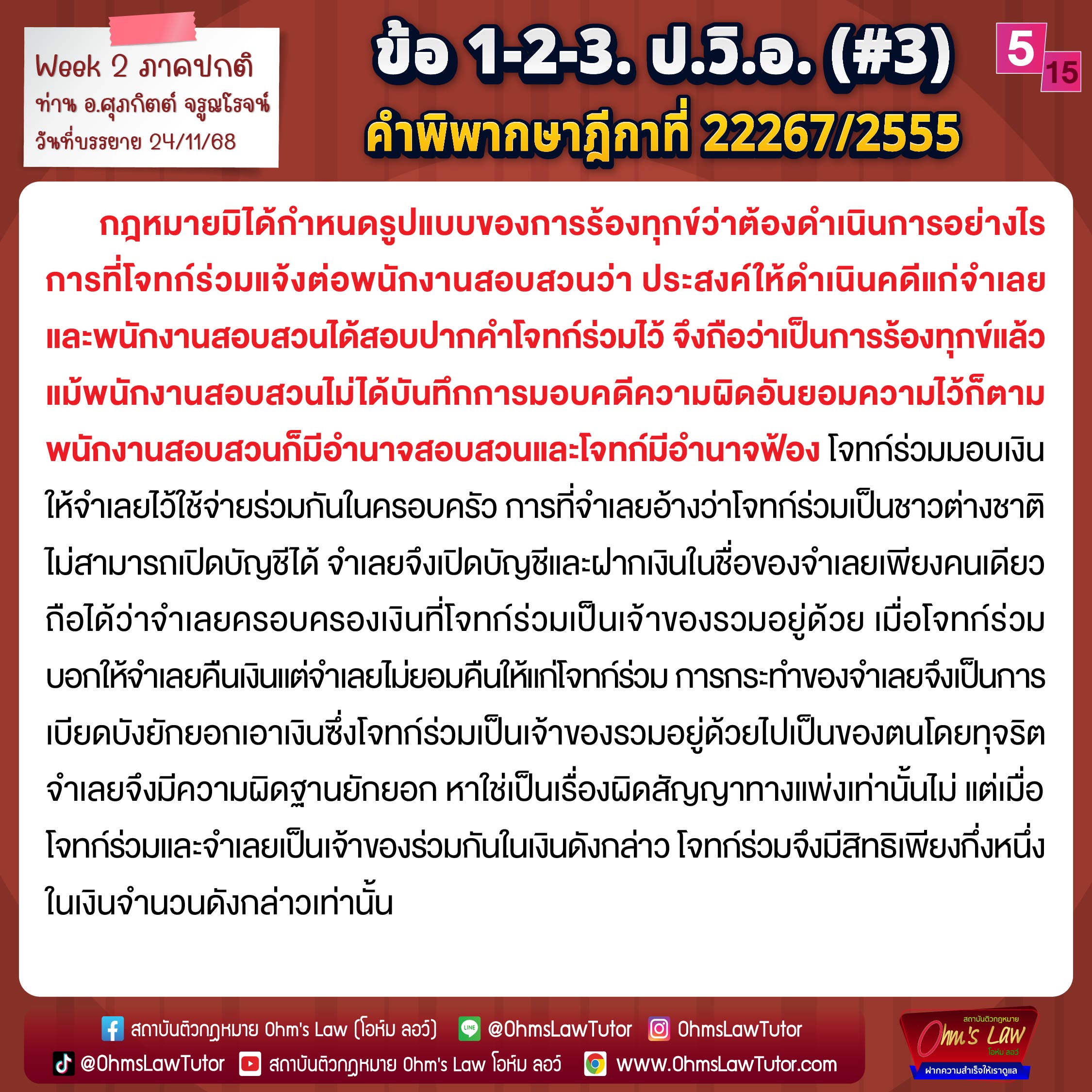 #ฎีกาน่าสนใจประจำสัปดาห์จากห้องบรรยายเนติฯ