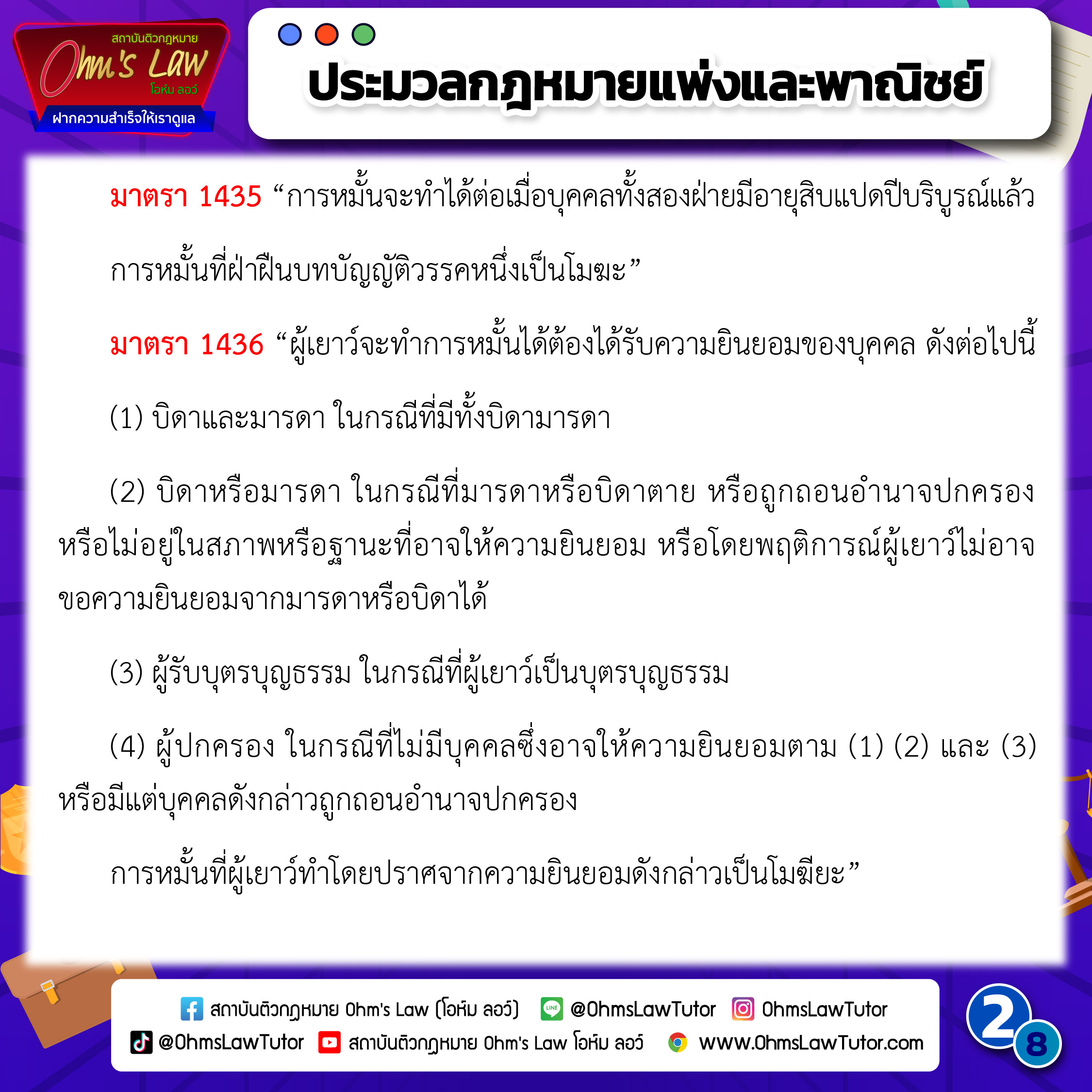 - สรุปหลักกฎหมาย เรื่อง การหมั้น ตาม ป.พ.พ. มาตรา 1435