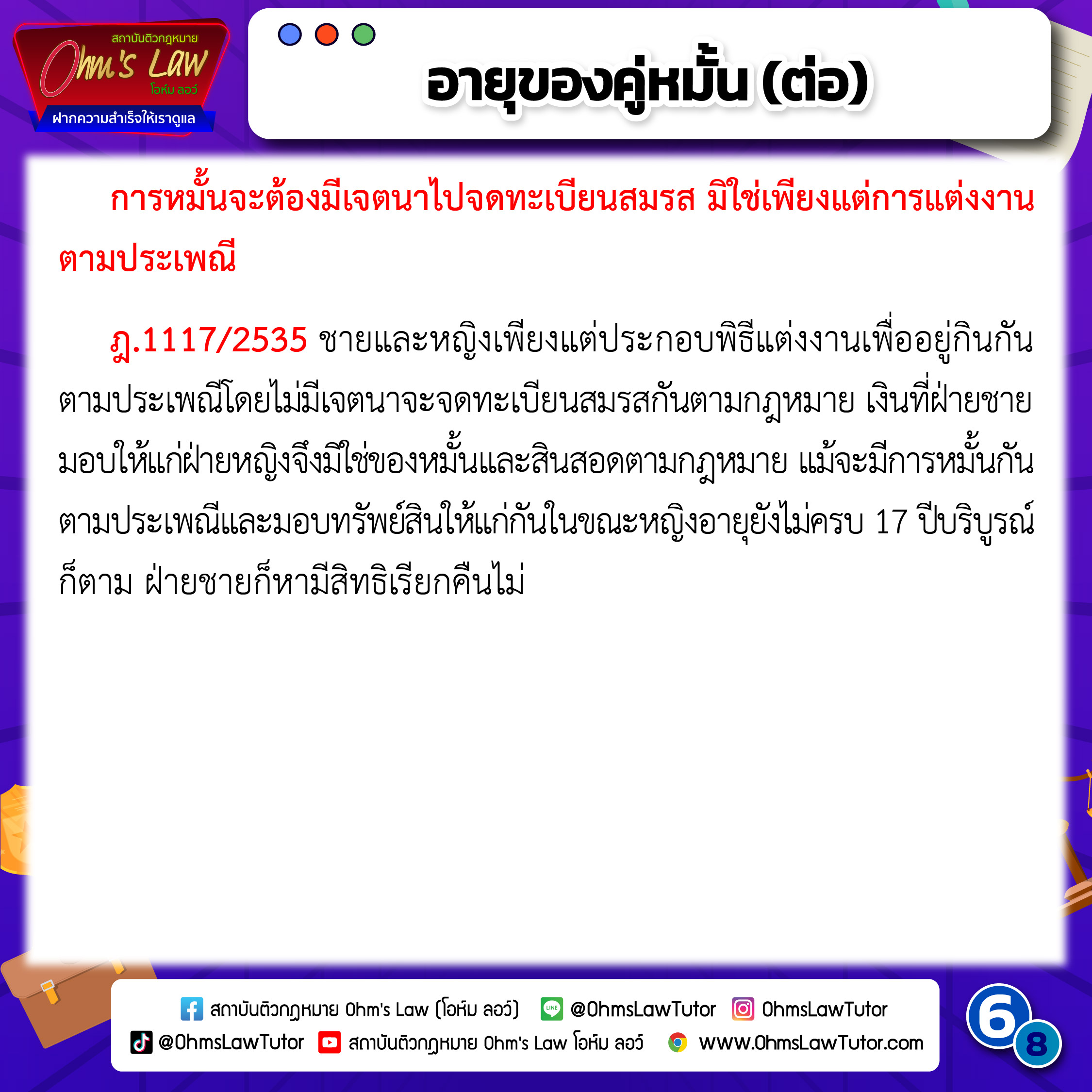 1.) การหมั้นที่บุคคลทั้งสองฝ่ายอายุยังไม่ครบ 18 ปีตามความในมาตรานี้ย่อมตกเป็นโมฆะ คือ