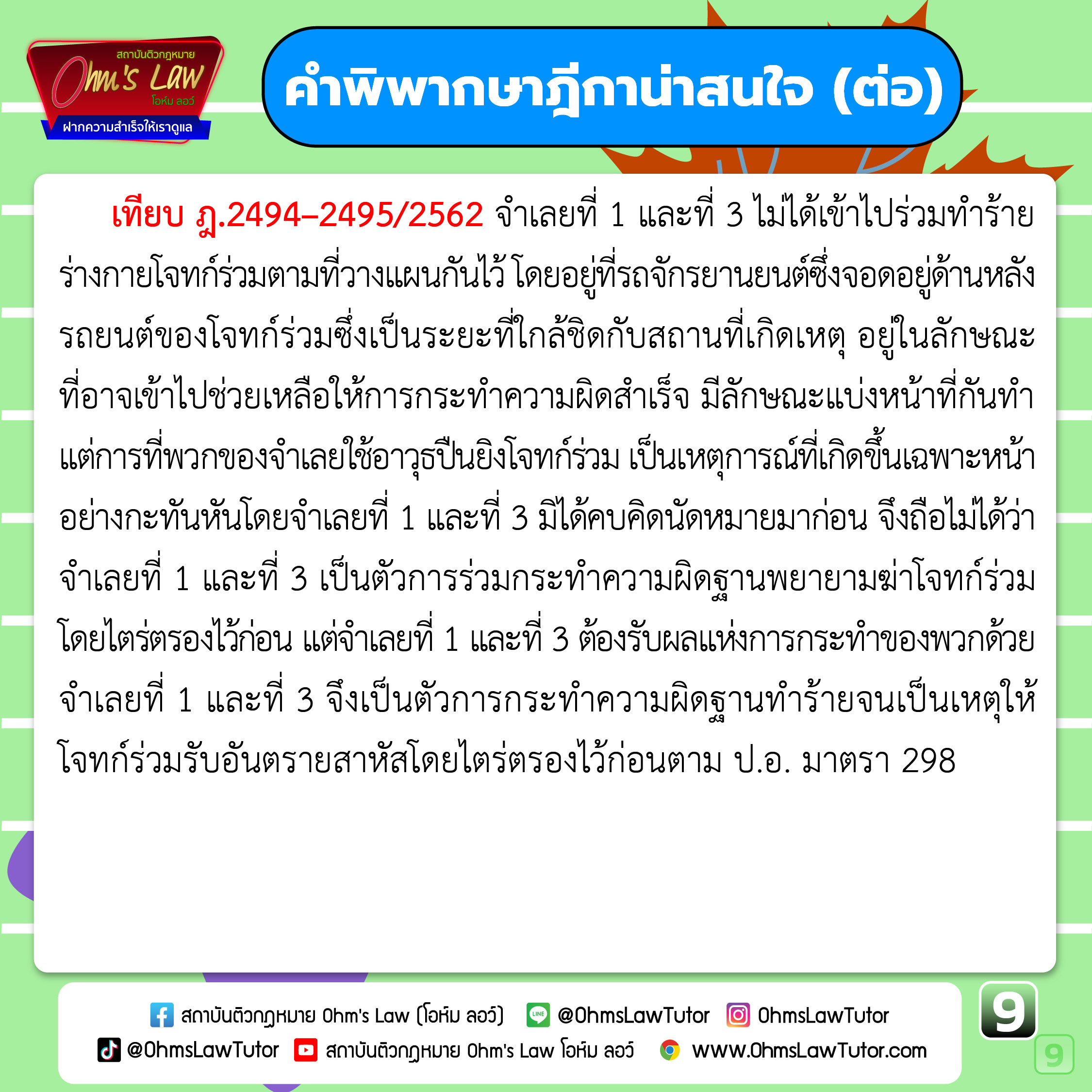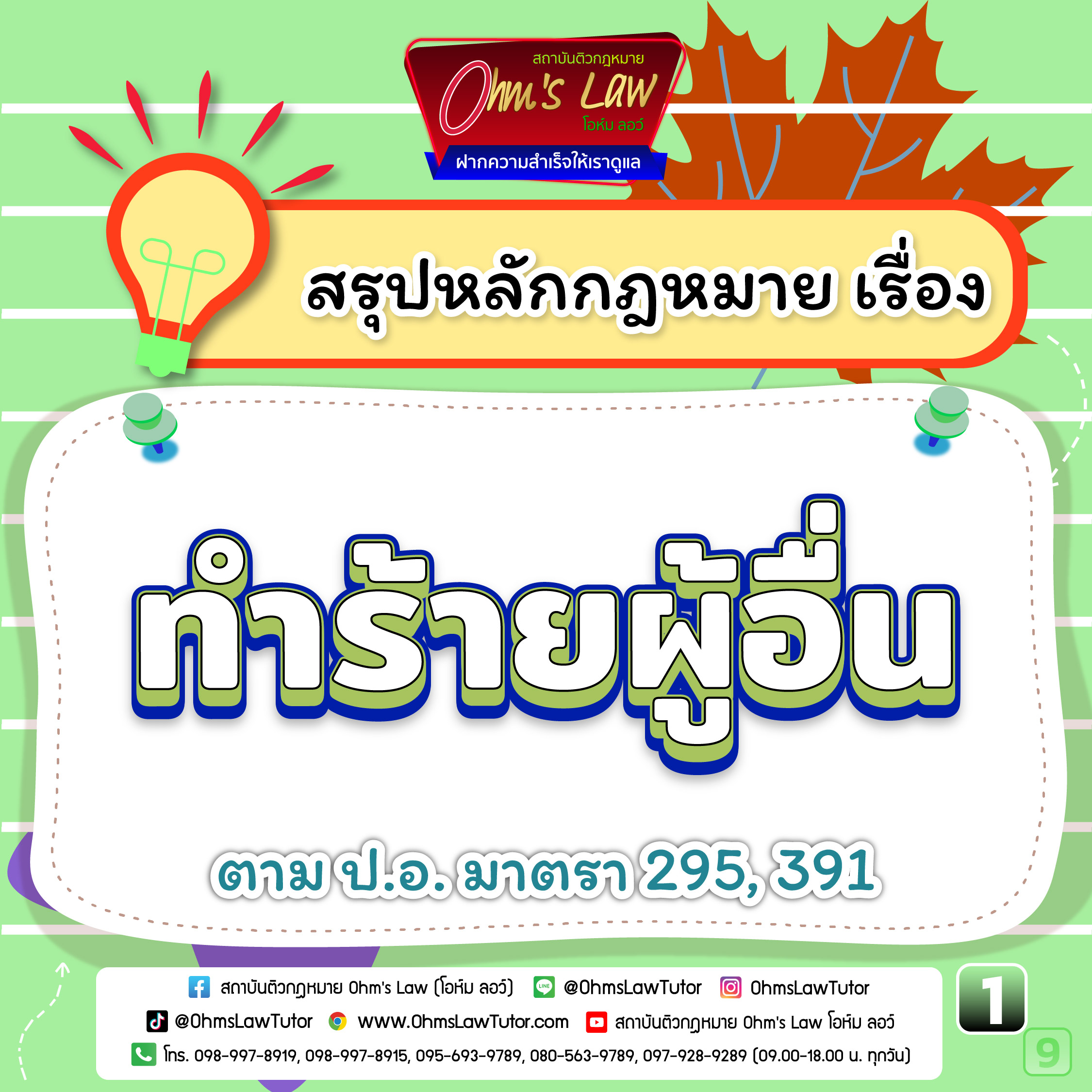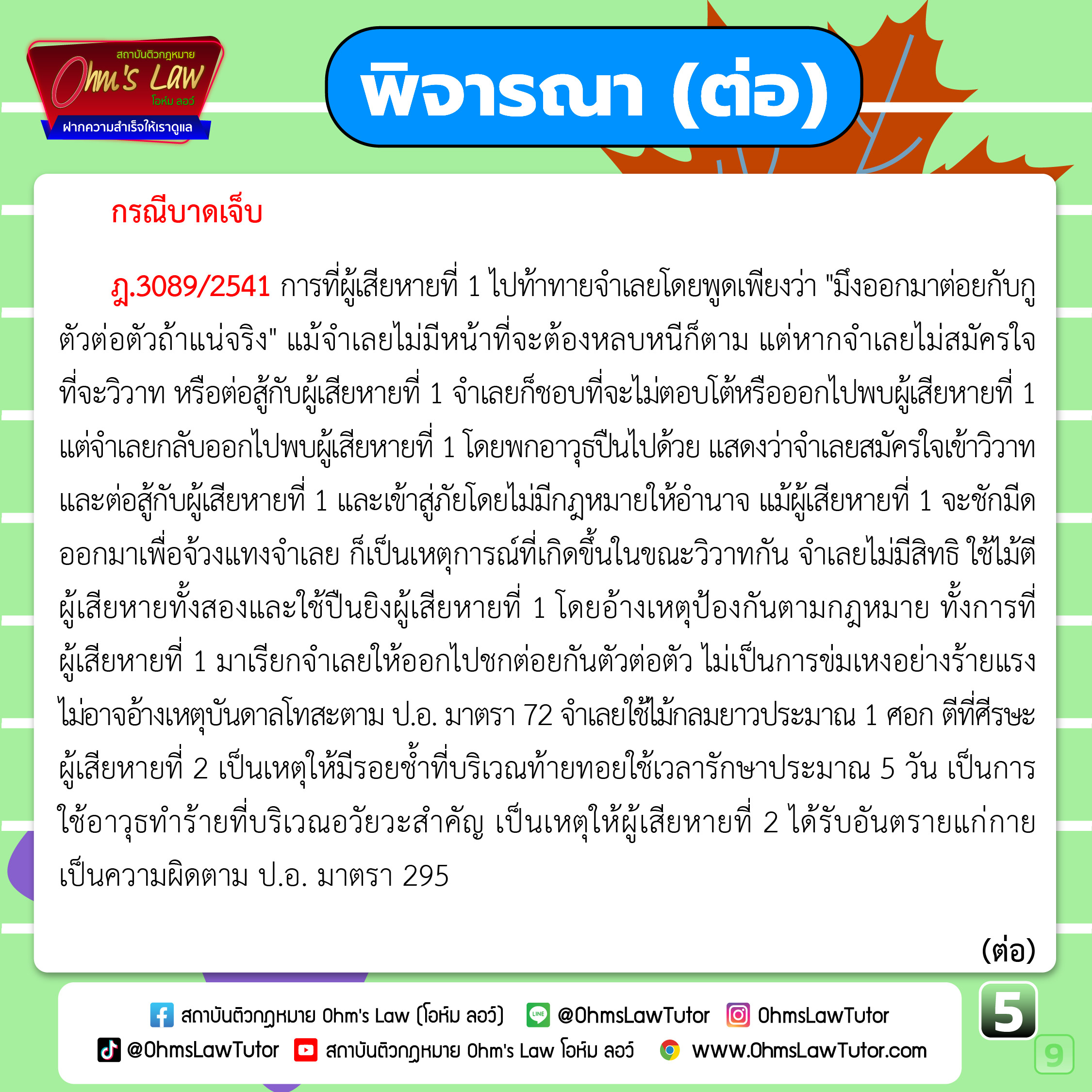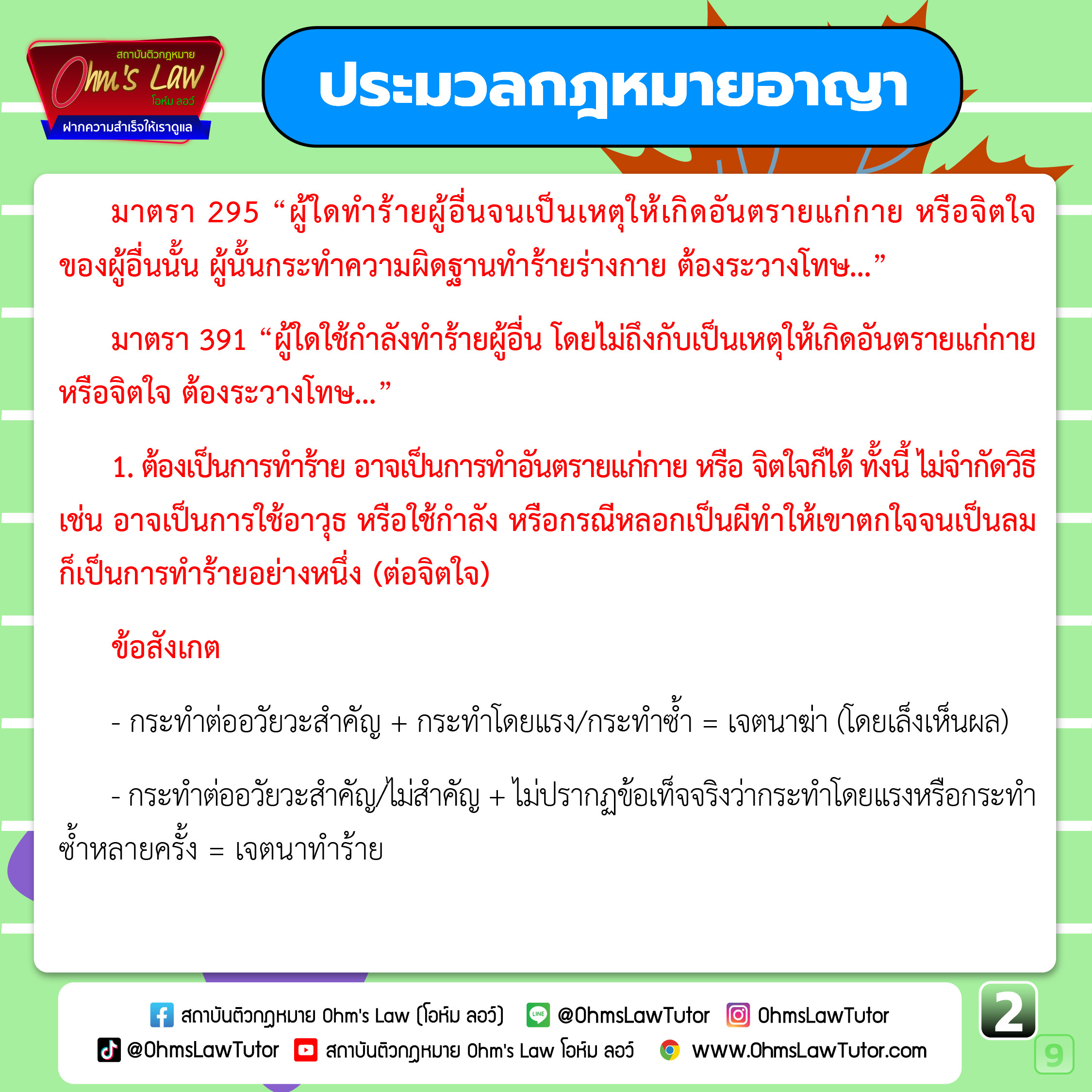 - สรุปหลักกฎหมาย เรื่อง ทำร้ายผู้อื่น ตาม ป.อ. มาตรา 295, 391