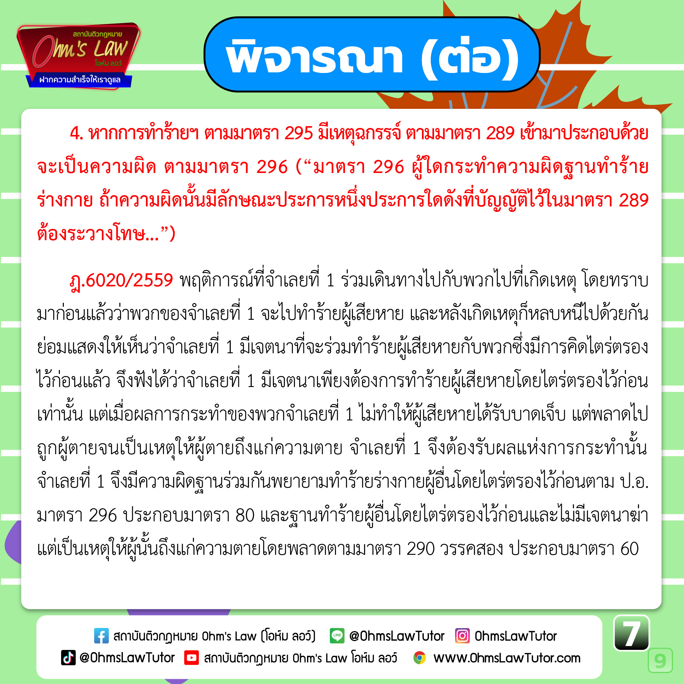4️⃣ หากการทำร้ายฯ ตาม ม.295 มีเหตุฉกรรจ์ ตามมาตรา 289 เข้ามาประกอบด้วย จะเป็นความผิด ตามมาตรา 296 (“มาตรา 296 ผู้ใดกระทำความผิดฐานทำร้ายร่างกาย ถ้าความผิดนั้นมีลักษณะประการหนึ่งประการใดดังที่บัญญัติไว้ในมาตรา 289 ต้องระวางโทษ...”)