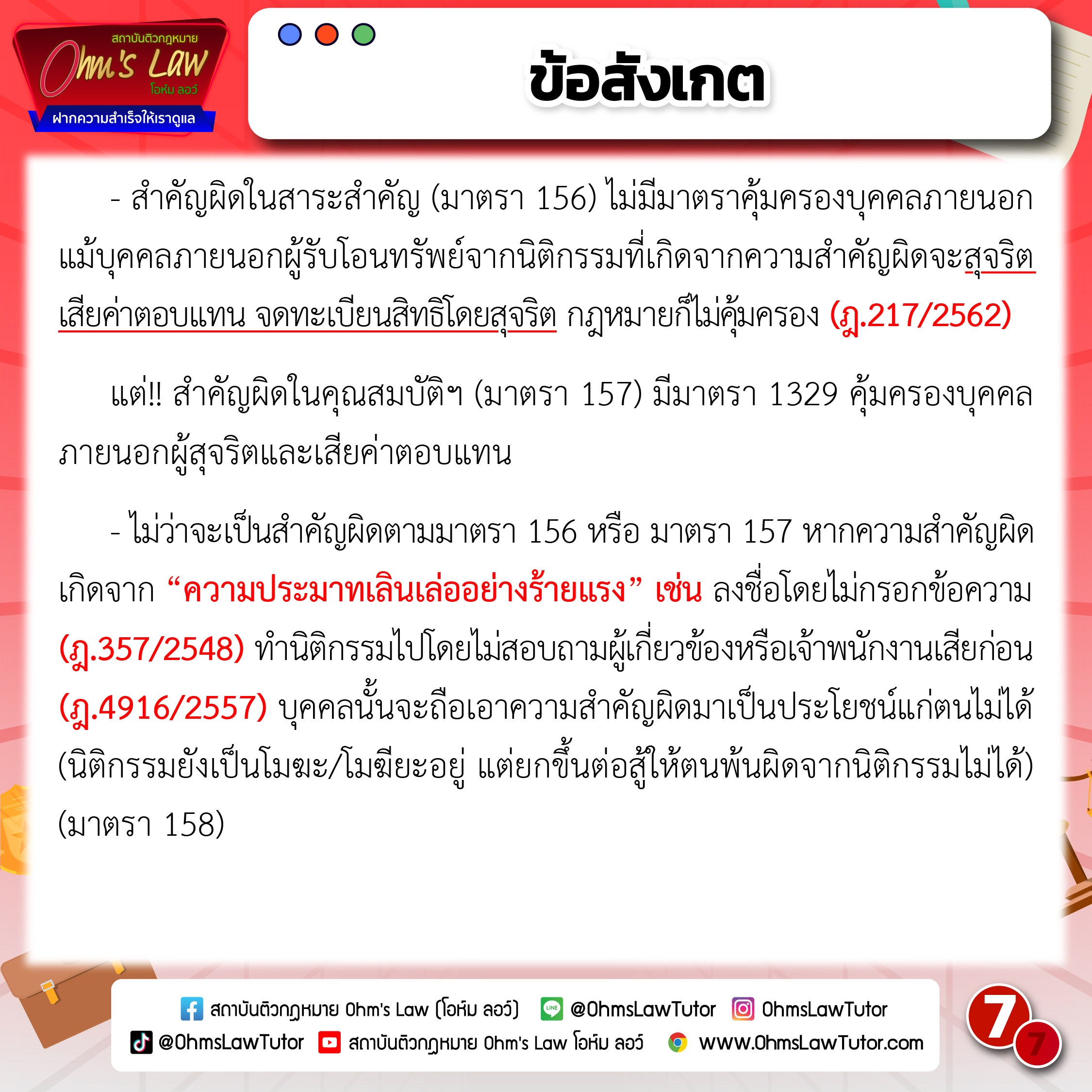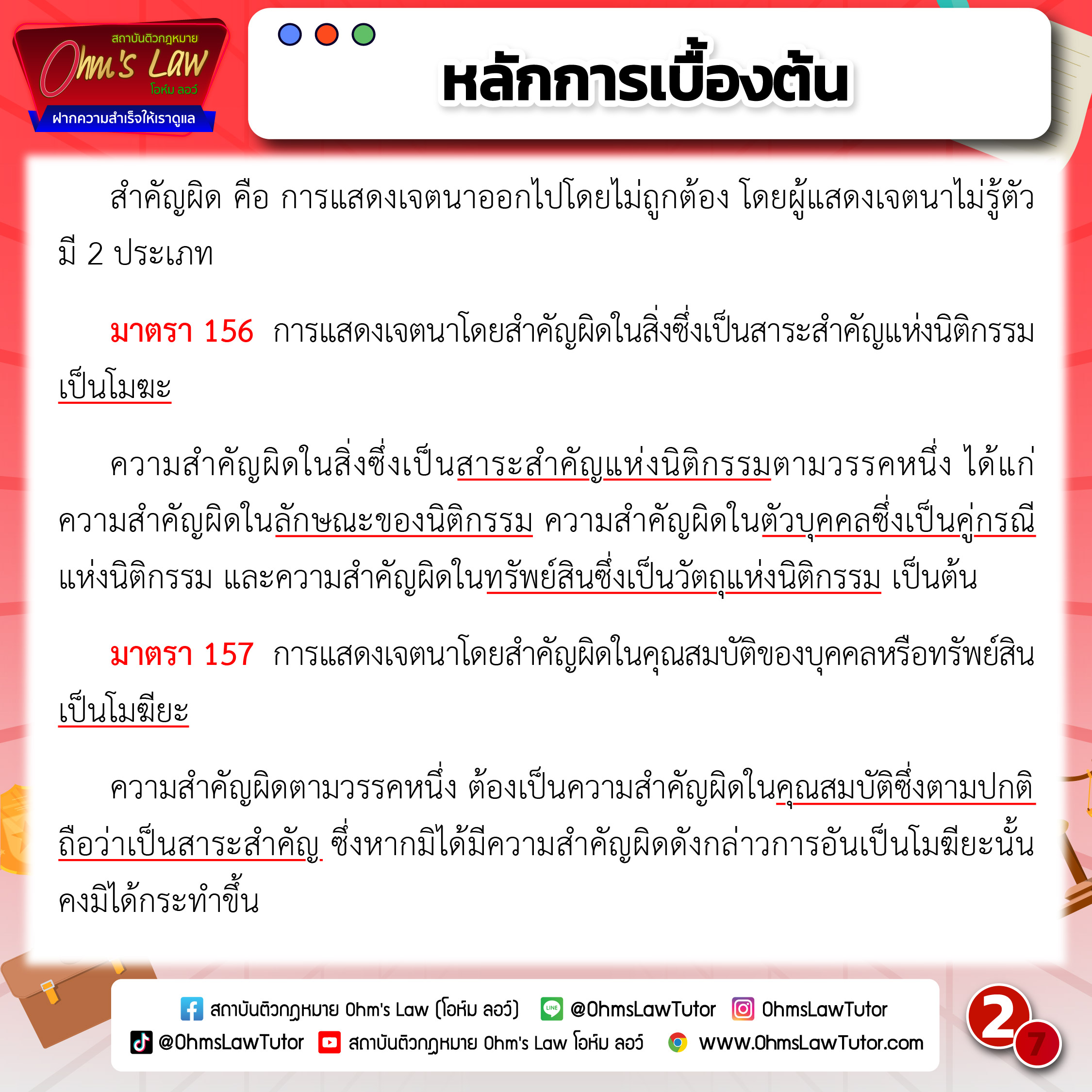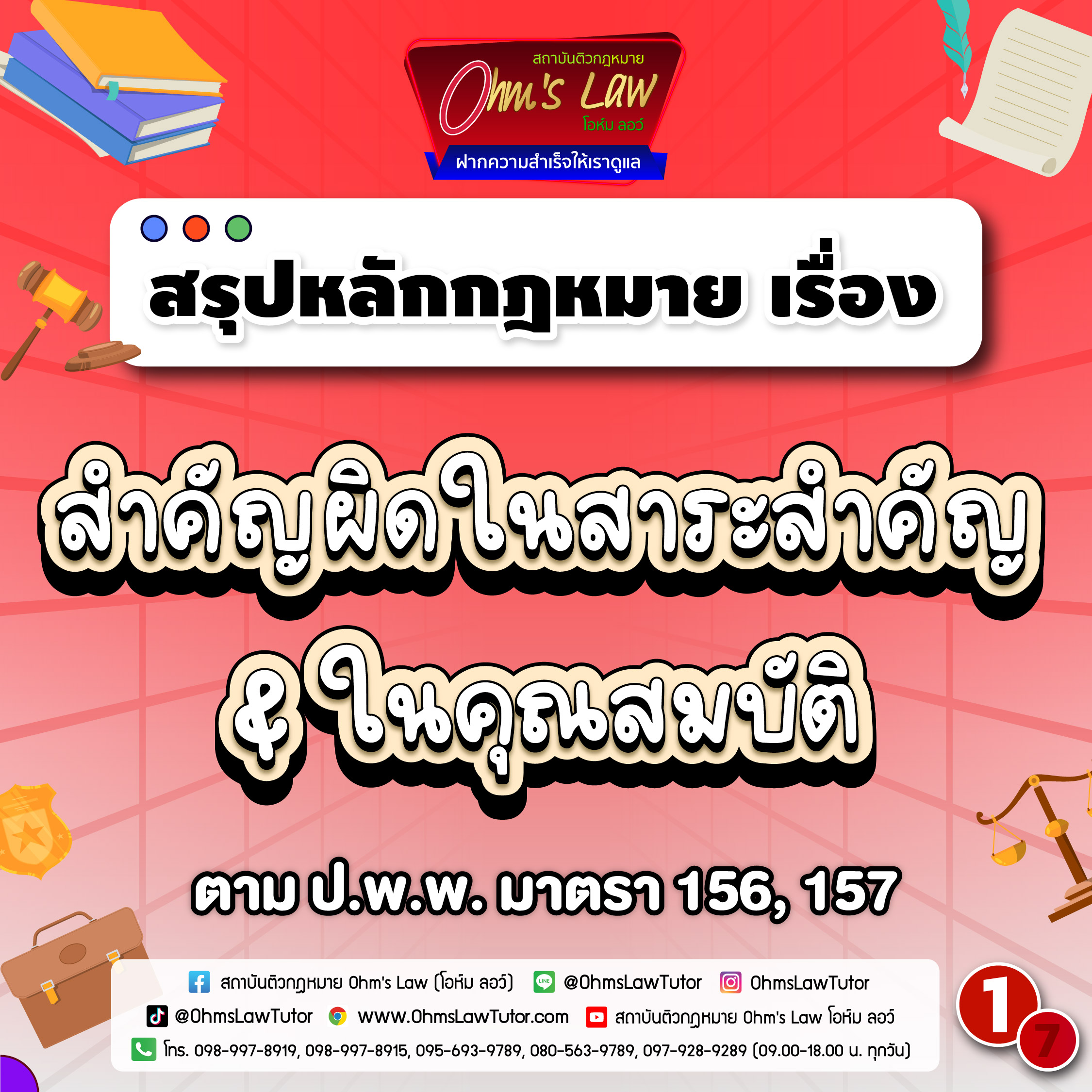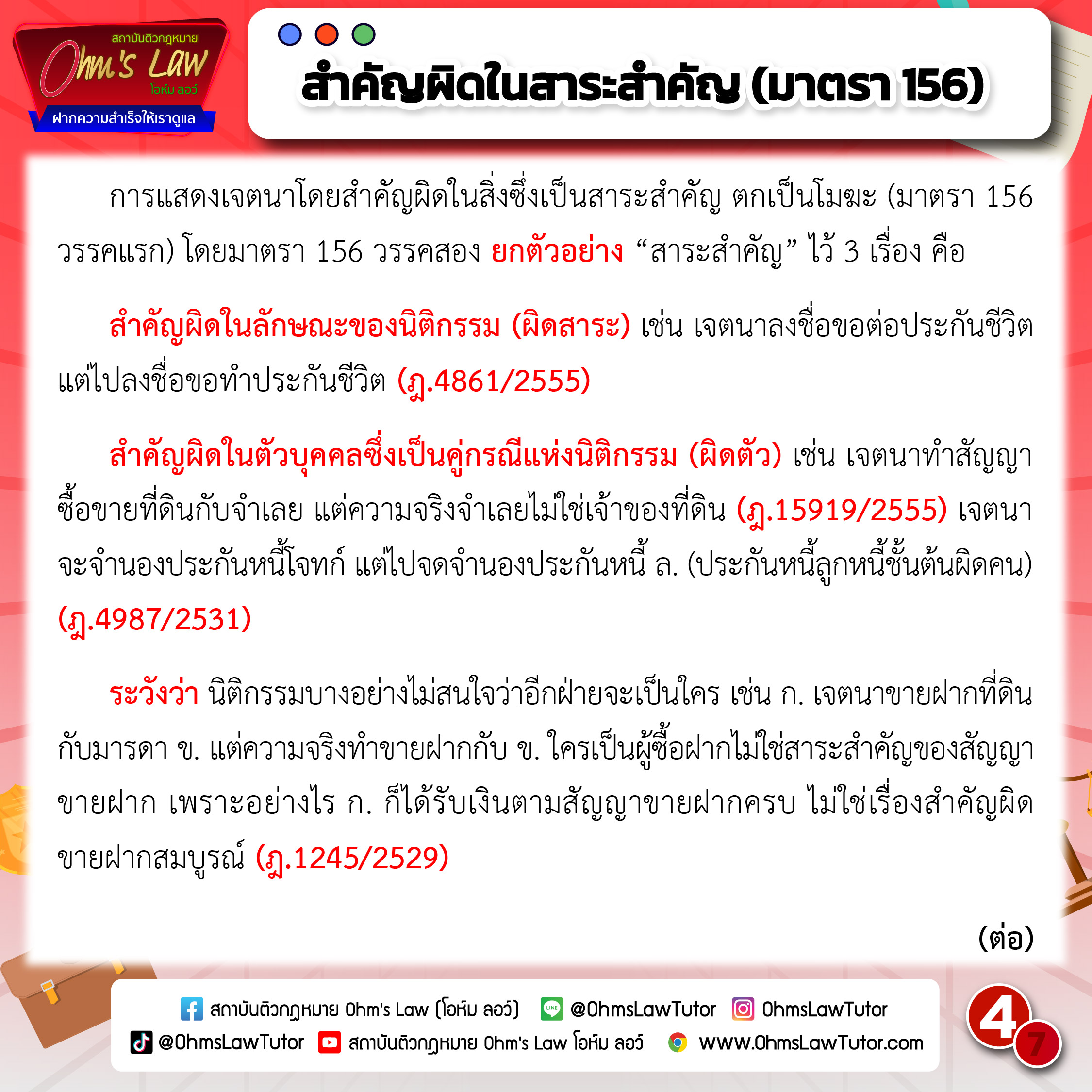 - สรุปหลักกฎหมาย เรื่อง สำคัญผิดในสาระสำคัญ & ในคุณสมบัติ ป.พ.พ. มาตรา 156, 157