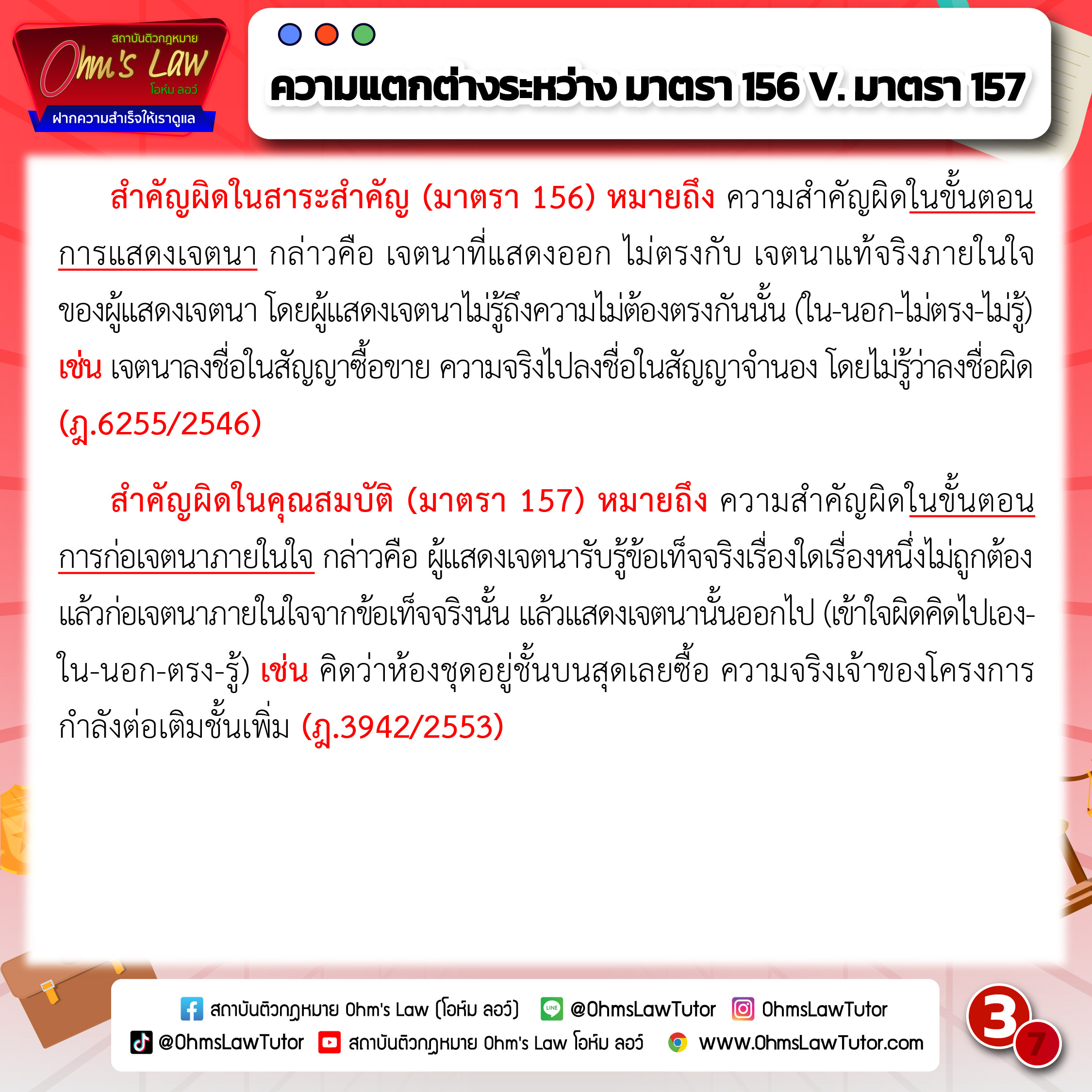 ▶️ ความแตกต่างระหว่าง ป.พ.พ. มาตรา 156, มาตรา 157